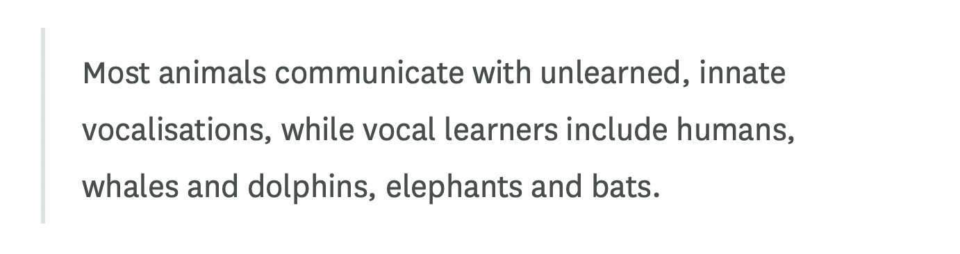 Most animals communicate with unlearned, innate vocalisations, while vocal learners include humans, whales and dolphins, elephants and bats.“The vocal behaviour that we were unravelling in this study is very similar to what is known as vocal accommodation in human linguistics,” says Moran. “It’s similar to our ability to adjust our ways of speaking in different social, dialectic, or hierarchical settings – modulating our voices to better fit in certain social groups.”