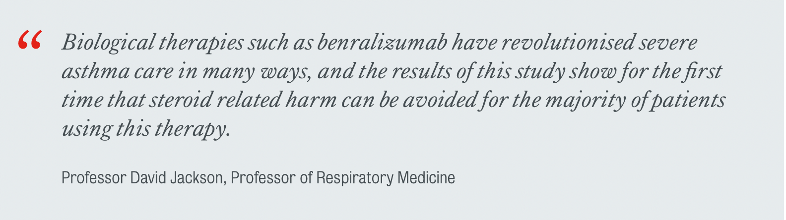 A landmark study has shown that severe asthma can be controlled using biologic therapies, without the addition of regular high-dose inhaled steroids which can have significant side effects.
