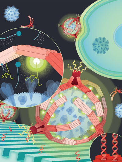 The fingers contain regions called DNA aptamers that are specially programmed to bind to molecular targets — the spike protein of the virus that causes COVID-19, for this first application — and trigger the fingers to bend to wrap around the target. On the opposite side, where the wrist would be, the NanoGripper can attach to a surface or other larger complex for biomedical applications such as sensing or drug delivery.