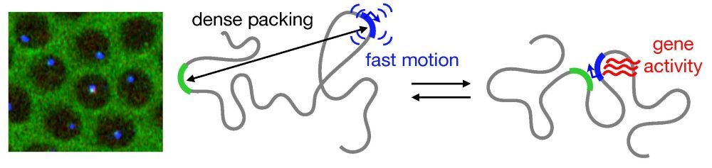 Despite being densely packed to fit into the nucleus, chromosomes storing our genetic information are always in motion. This allows specific regions to come into contact and thereby activate a gene. A group of scientists from the Institute of Science and Technology Austria (ISTA), Princeton University, and the Institut Pasteur in Paris now visualized this dynamic process and give novel insights into the physical characteristics of DNA.