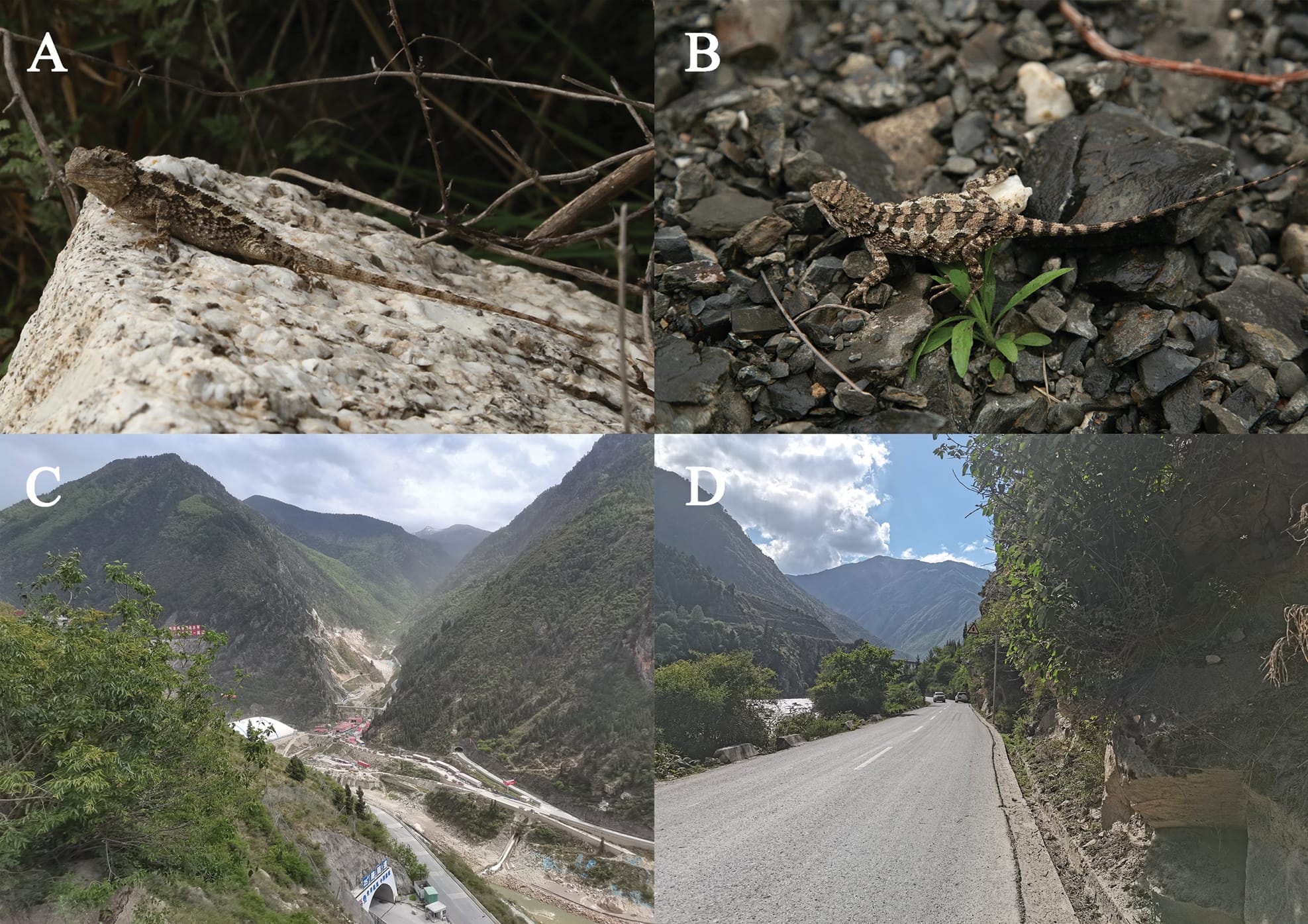 The Hengduan Mountains, known for their rugged terrain and complex ecosystems, have long been recognized as a hotspot for endemic species. The genus Diploderma, part of the Agamidae family, includes lizards adapted to dry valley environments across East Asia. Prior studies identified three Diploderma species in the Dadu River valley: D. daduense, D. danbaense, and D. flaviceps. However, the upper reaches of the river remained relatively unexplored until recent field efforts.