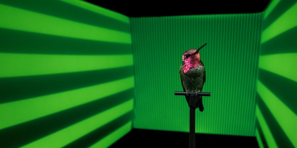 The researchers had hummingbirds perform repeated flights from a perch to a feeder in a four-metre tunnel. To test how the birds reacted to a variety of visual stimuli, the team projected patterns on the chamber’s front and side walls. Each flight was videoed.