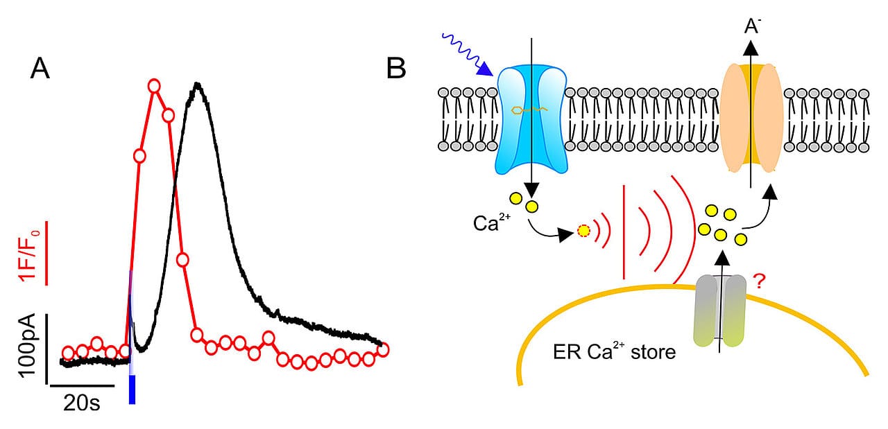After the calcium transient ceased, however, the anion current could still be measured for a further 30 seconds. This lagging of the electrical signal is related to the biology of the enzymes that process the calcium signal and switch the anion channels on or off accordingly, explains Rainer Hedrich. This made it clear that the calcium influx lasting 0.1 seconds is amplified in the cell in such a way that a subsequent reaction lasting more than a hundred times longer is set in motion.
