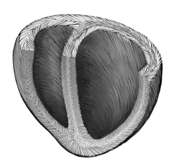 In 1969, Edward Sallin, former chair of the Department of Biomathematics at the University of Alabama Birmingham Medical School, argued that the heart’s helical alignment is critical to achieving large ejection fractions — the percentage of how much blood the ventricle pumps with each contraction.