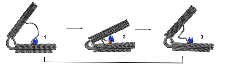 In a hand grip strength trainer, you squeeze the handles together against the resistance of the spring. Once you release your grip, the spring pushes the handles back to their original position. “Our motor uses a very similar principle,” says Famulok, from the Life and Medical Sciences Institute (LIMES) at the University of Bonn. “But the handles are not pressed together but rather pulled together.”