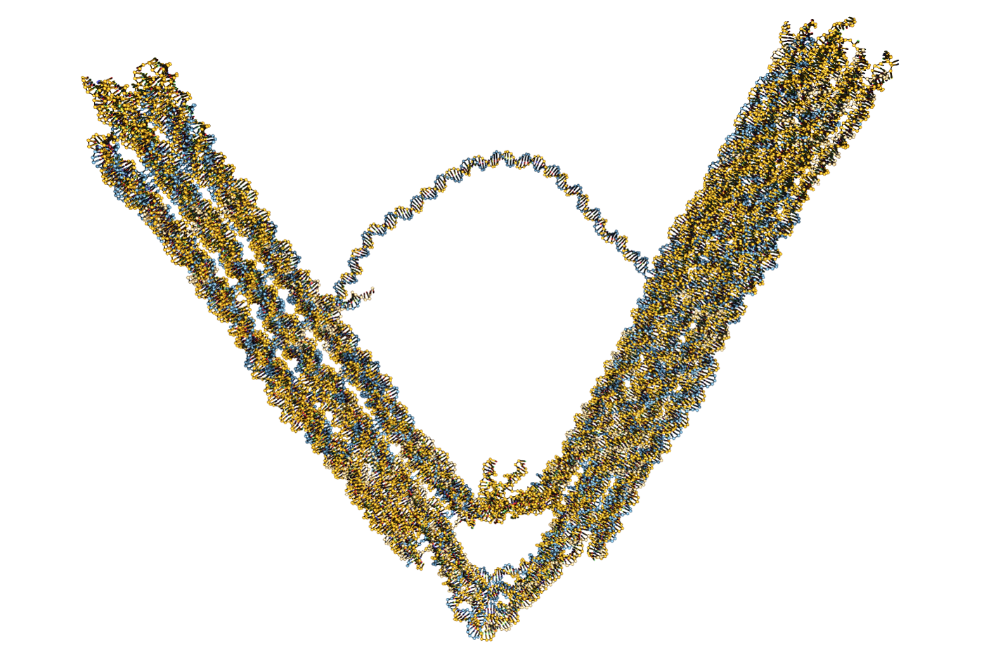 Šulc has used his group’s computer modeling tools to gain insights into the design and operation of this leaf-spring nano-engine. The structure is comprised of almost 14,000 nucleotides, which form the basic structural units of DNA.