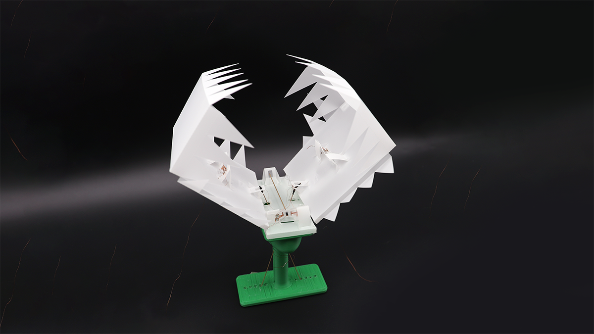OrigaMechs derived their computing capabilities from a combination of mechanical origami multiplexed switches created by the folds and programmed Boolean logic commands, such as “AND,” “OR” and “NOT.” The switches enabled a mechanism that selectively output electrical signals based on the variable pressure and heat input into the system.
