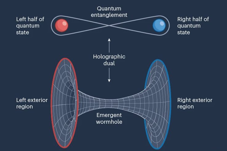 The present work explores the equivalence of wormholes with quantum teleportation. The Caltech-led team performed the first experiments that probe the idea that information traveling from one point in space to another can be described in either the language of gravity (the wormholes) or the language of quantum physics (quantum entanglement).