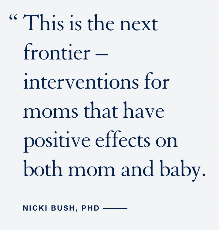 “There has been so little research on what we can do in the positive lane; it’s been mostly about showing the negative effects of prenatal stress,” Bush said. “This is the next frontier – interventions for moms that have positive effects on both mom and baby.”