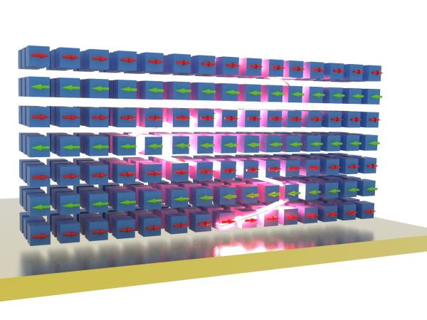 In their new article in the journal "Nature," Menon and his team report the properties of a layered magnet that hosts strongly bound excitons -- quasiparticles with particularly strong optical interactions. Because of that, the material is capable of trapping light -- all by itself. As their experiments show, the optical responses of this material to magnetic phenomena are orders of magnitude stronger than those in typical magnets. "Since the light bounces back and forth inside the magnet, interactions are genuinely enhanced," said Dr. Florian Dirnberger, the lead-author of the study. "To give an example, when we apply an external magnetic field the near-infrared reflection of light is altered so much, the material basically changes its color. That's a pretty strong magneto-optic response."