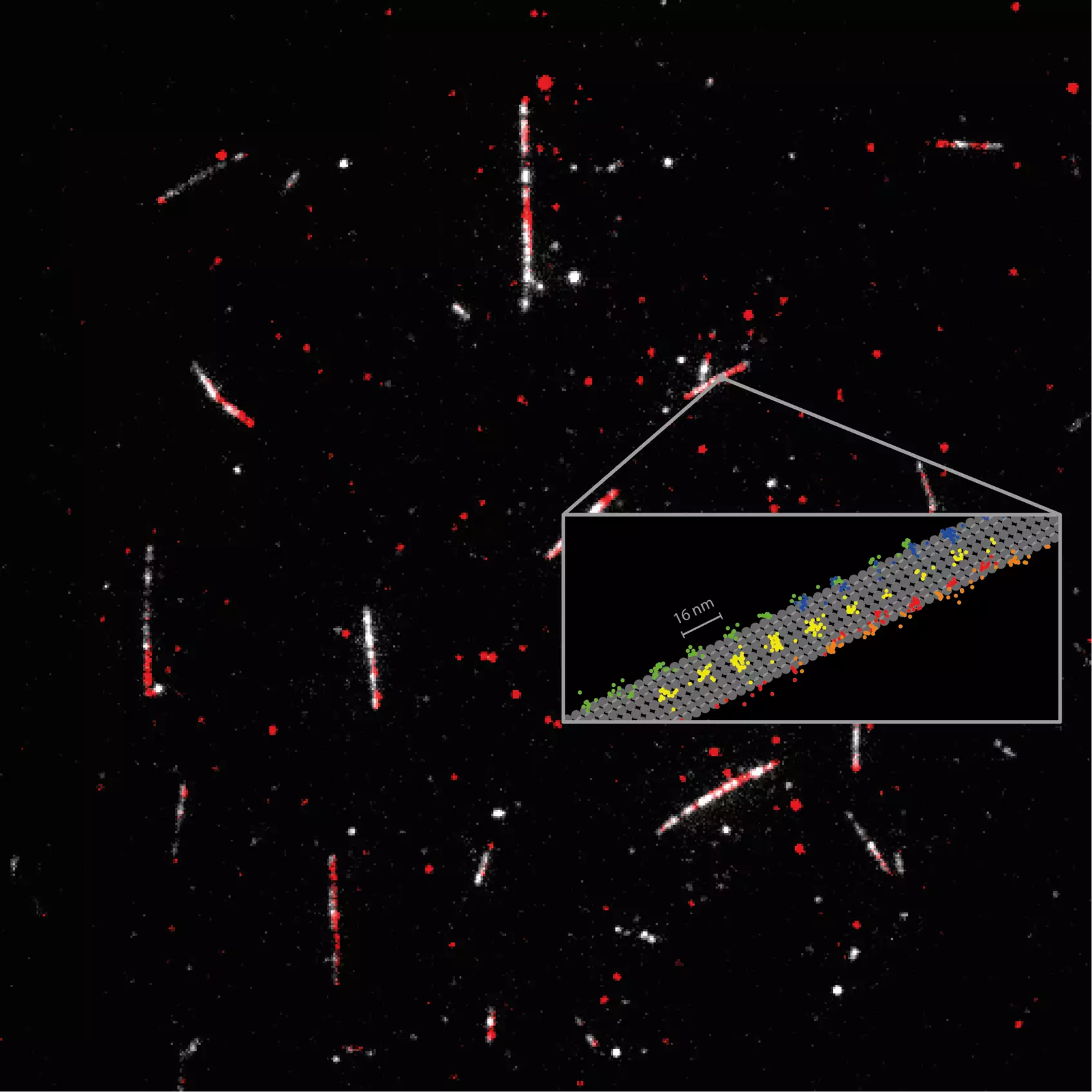 Using only a single fluorophore for labeling the kinesin-1, the scientists recorded the regular 16 nm. steps of individual heads as well as 8 nm substeps, with nanometer/millisecond spatiotemporal resolution. Their results proved that ATP is taken up while a single head is bound to the microtubule, but that ATP hydrolysis occurs when both heads are bound. It also revealed that the stepping involves a rotation of the protein 'stalk', the part of the kinesin molecule that holds the cargo. The spatiotemporal resolution of MINFLUX also revealed a rotation of the head in the initial phase of each step. Significantly, these findings were made using physiological concentrations of ATP, as was hitherto not possible with tiny fluorescence labels.